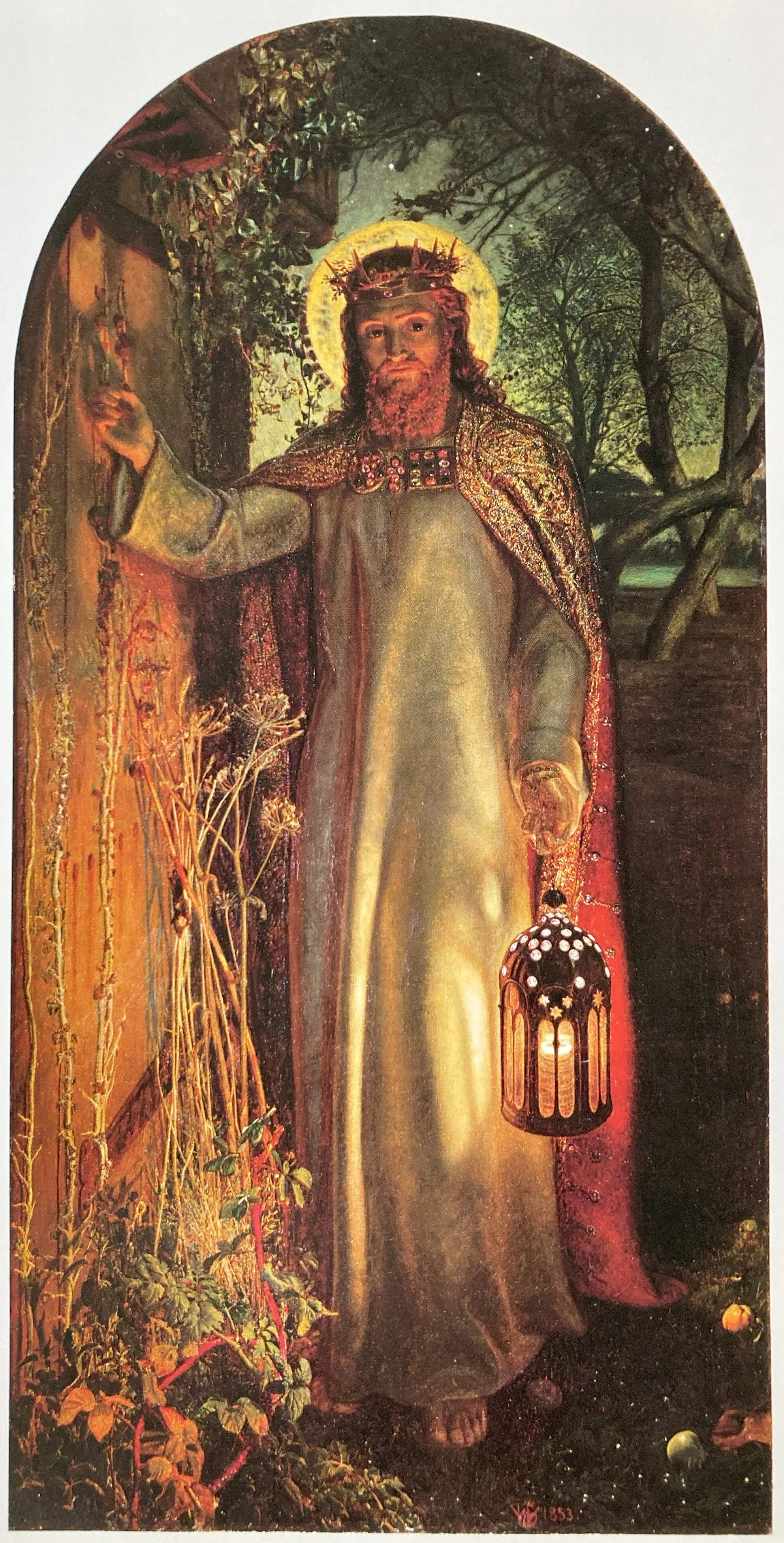 Probably the most famous of all Victorian religious images, it was exhibited at the Royal Academy in 1854, together with The Awakening Conscience. It illustrates a passage from Revelations: ‘Behold, I stand at the door, and knock; if any man hear my voice, and open the door, I will come in to him, and will sup with him, and he with me.’ Hunt began the picture at Worcester Park Farm, Surrey, in the winter of 1851, working in an orchard at night. Millais recorded that Hunt was ‘cheerfully working by a lantern from some contorted apple tree trunks, washed with the phosphor light of a perfect moon…’ The picture was not finished until 1853, when it was sold to Thomas Combe of Oxford, who wife later presented it to Keble College. Much later in life, Hunt painted a second, much larger version, which now hangs in St. Paul’s Cathedral.